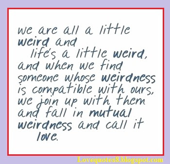 Some of the Love quotes that we come across will be tagged as Weird Love Quotes, well they can literally be weird or just an usage of the word weird to ultimately make look the quote funny. :)